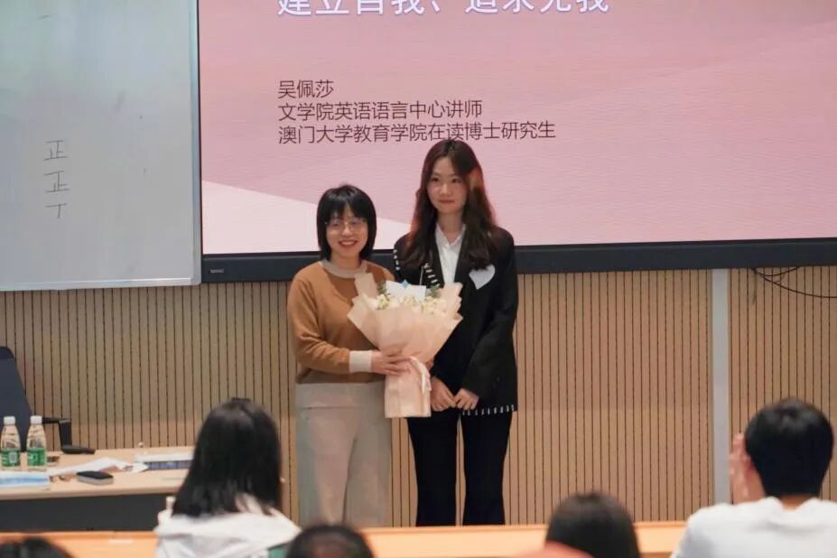 黄钰莹同学在讲座结束后说到:“很感谢吴老师真诚地向我们分享她探索自我的经历。在聆听了吴老师的讲座之后,我将学着明确自己的目标与规划,主动走出舒适圈去接受磨砺,努力寻求并体现个人价值。