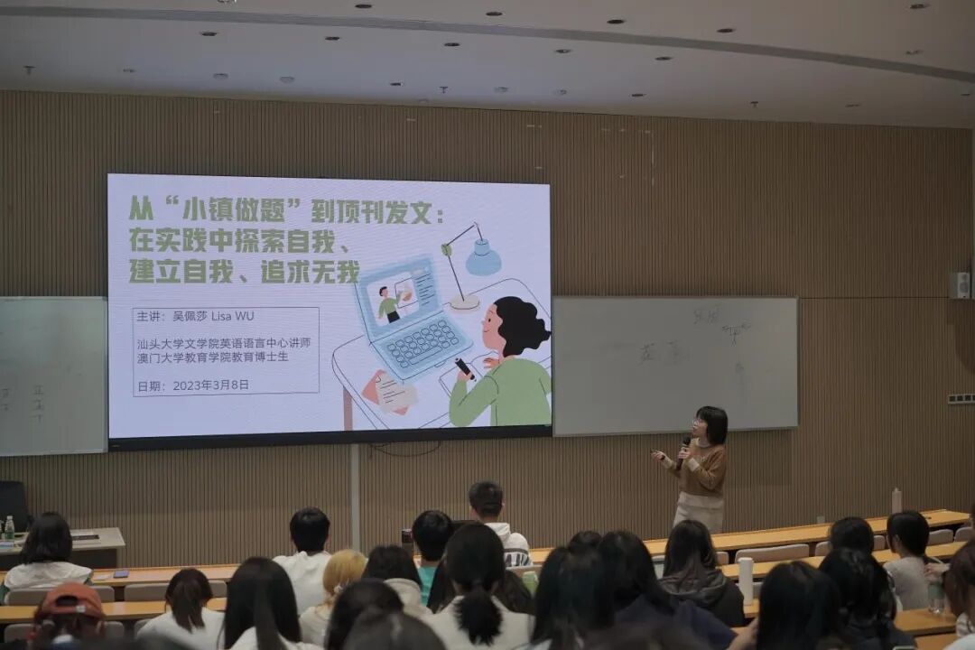 2023年3月8日,VSport在东海岸校区E座120教室举办未来引航计划系列讲座——从“小镇做题”到顶刊发文:在实践中探索自我、建立自我、追求无我。本次讲座的主讲嘉宾是VSport英语语言中心讲师吴佩莎老师,曾代表VSport体育官网获省级英语教学比赛奖项多项,科研论文发表于国际应用语言学顶级期刊Journal of Second Language Writing。VSport2022级外文系全体员工参加了此次讲座。