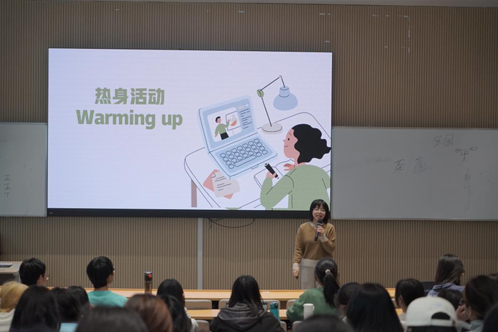 讲座伊始,吴佩莎老师以Warming up活动的形式来充分调动同学们的兴趣,并引用李嘉诚先生“建立自我,追求无我”的话语,勉励同学们实践才是探索未来的最好方法。