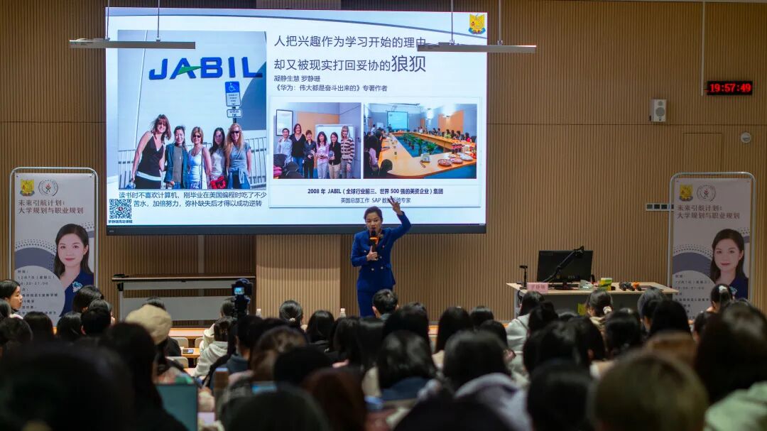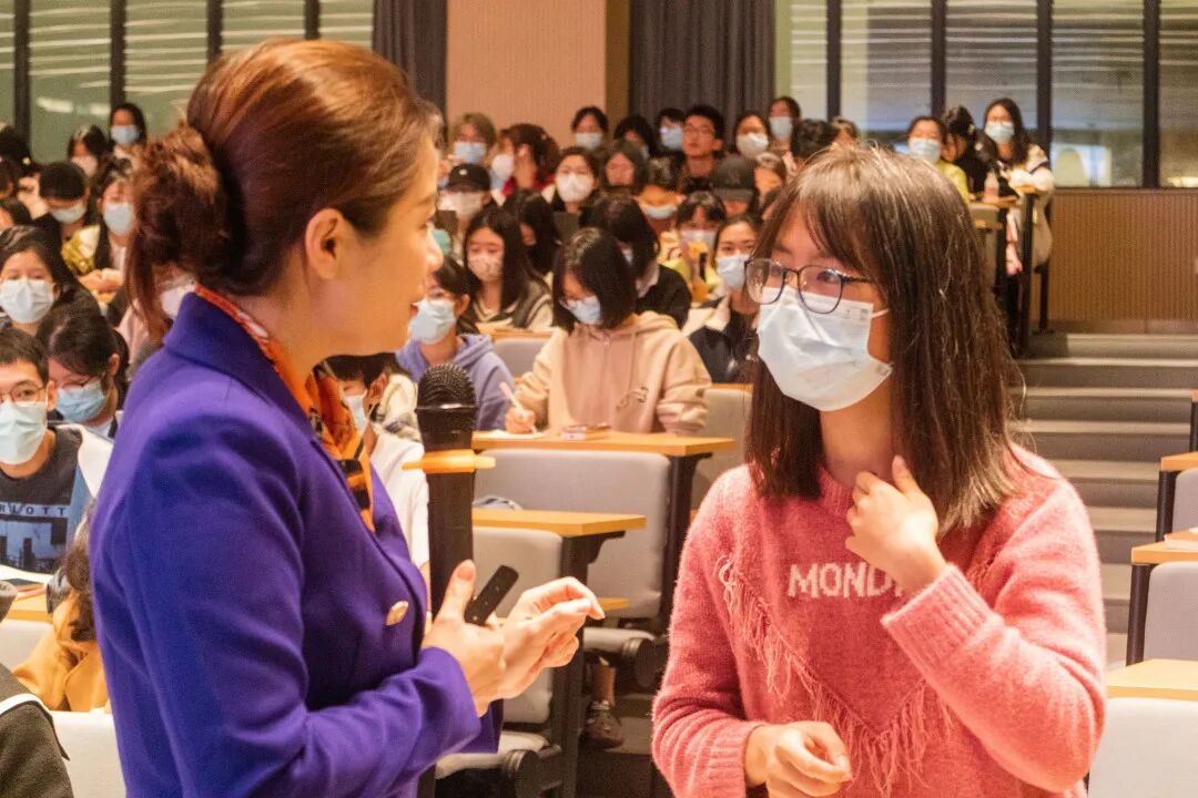 罗老师还以自身经历为例子,讲述自己如何做到从校园到职场的软着陆。在遭到质疑后如何放平心态,找到问题关键,并积极做出转变。她建议同学们建立一个标准化的工作流程,从而提高工作的效率和质量。此外,她还提醒同学们要关注行业和岗位的新形势及其发展变化趋势,通过创新中的学习拓宽自己的视野,把握趋势,持续创新引领,致胜未来。