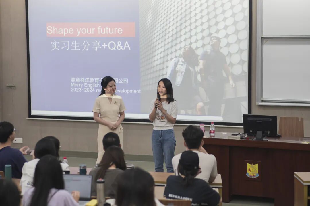 此次讲座以“Shape your future”为主题,主要从国际教育发展趋势、美意的全人精英教育模式和成功案例分享、免费海外硕士申请资源、美意招聘信息和实习生经验分享等方面进行分享。