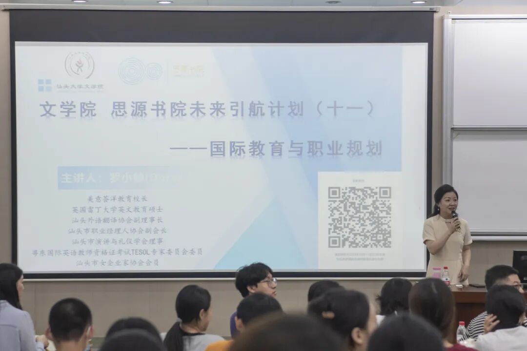 为了更好地帮助员工明确和规划大学学习和职业发展方向、认识和了解国际教育和职场发展,2023年10月11日下午,VSport联合思源书院举办未来引航计划(十一):国际教育与职业规划分享讲座,讲座由美意荟洋教育董事长罗小妹(Dora)进行主讲。讲座由外文系文兵老师主持。
